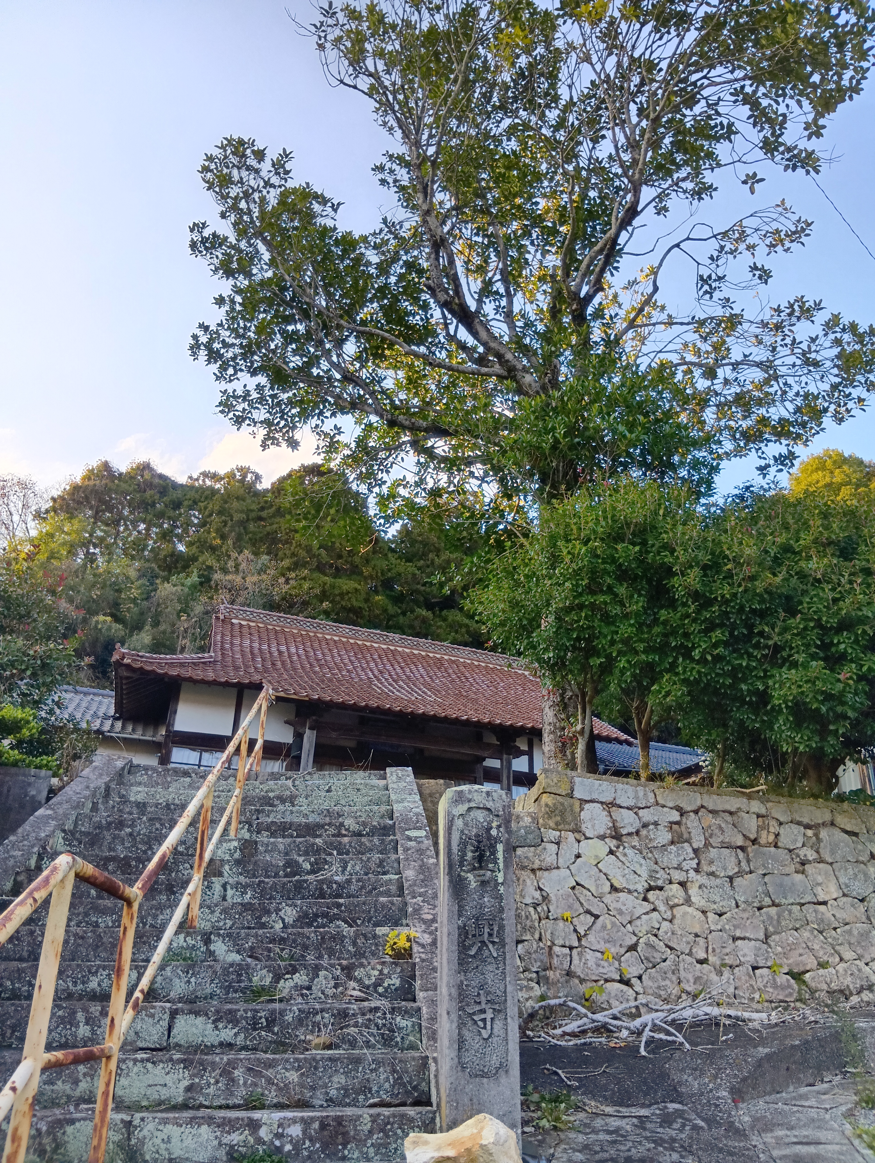 ファイル:0604本堂及びタラヨウの木.JPG