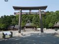 | + | また、平成二十五年(2013)の創建1500年記念事業の一環としてつくられた大きな鳥居に目をひかれますが、島根県内では木造鳥居として最大級を誇るとのことです。社殿裏手のご神体山である八百山は、神聖な空気に包まれていており、ご祭神のお墓(円墳)として静かに祀られています。 | ||